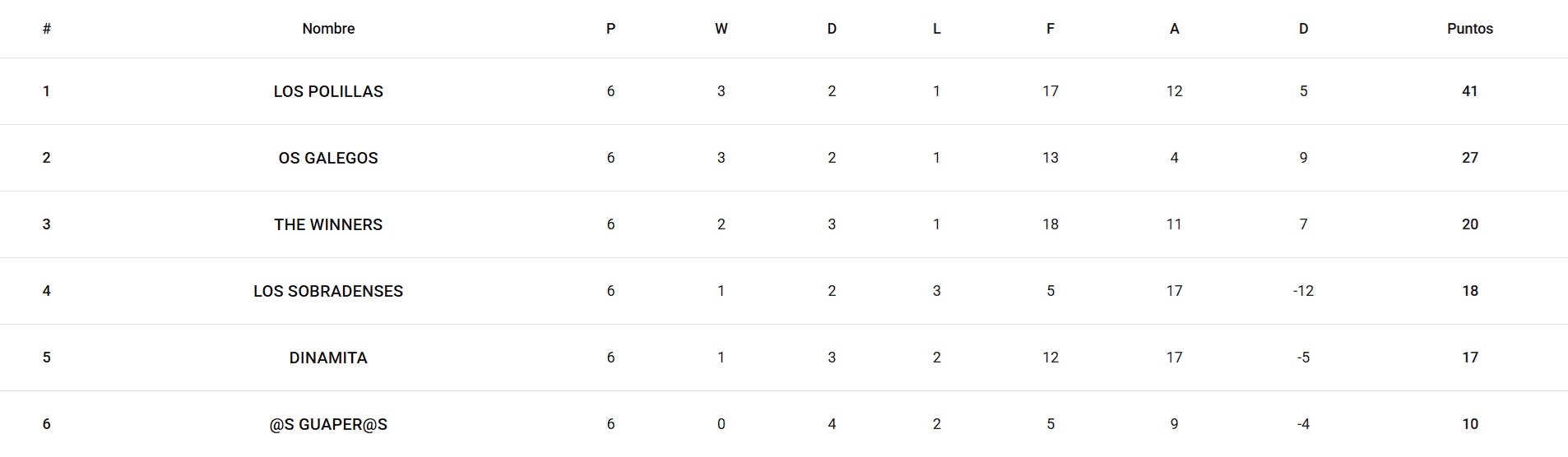 Clasificación da Liga